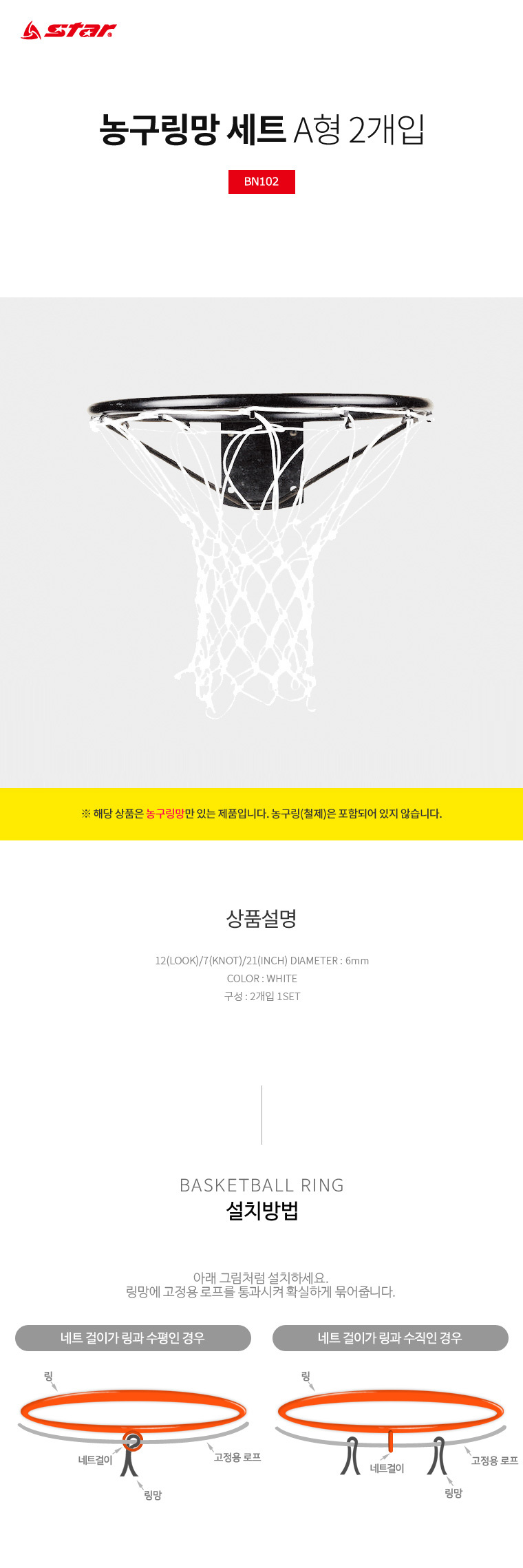 스타 농구링망 세트 A형 2개입 BN102 이미지 확대 보기